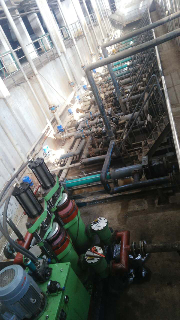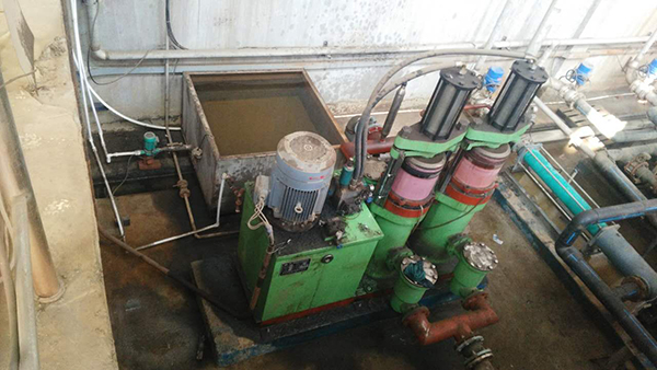 污泥脫水主要采用板框壓濾機進行污泥脫水,由于壓濾機使用頻率高,進泥顆粒含量多,導(dǎo)致螺桿泵定子及轉(zhuǎn)子損壞非常大,螺桿泵定子轉(zhuǎn)子使用壽命短。維護費用非常高,成本較大,因此結(jié)合項目實際情況,將螺桿泵更換為柱塞泵,在保證生產(chǎn)進料效果的前提下,節(jié)約維護成本,節(jié)約能耗。