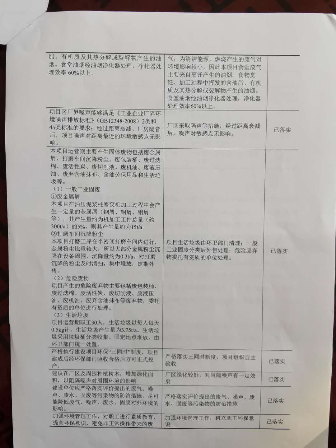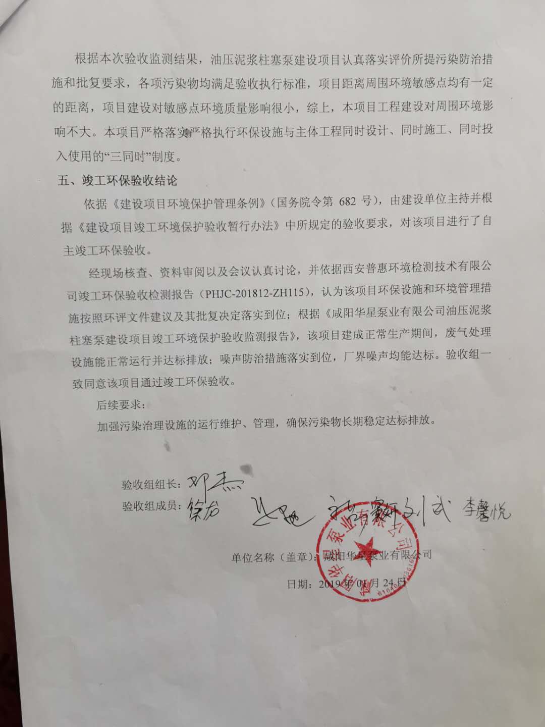 4咸陽華星泵業有限公司油壓泥漿柱塞泵建設項目竣工環境保護驗收組意見(廢棄、廢水、噪音部分)
