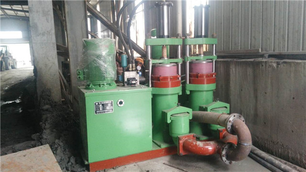 2、升壓過濾階段:當壓濾機內充滿物料壓力開始上升,壓濾機快速出水,這時壓濾機還需大流量進料。(YBH泵低壓大流量不變進料快速過濾)隨著進料壓力逐漸升高壓濾機內濾餅開始形成變厚,壓濾機的出水量開始由大變小,壓濾機的過濾能力也由大變小,進料量也隨之減小。(YBH泵輸出流量自動由大變小,液壓系統、無溢流,開始節能運行。)